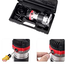 Justool wood router tool set including power tools, straight guide, timing guide, wrenches, replaceable carbon brush, perfect for a variety of routing and trimming applications.